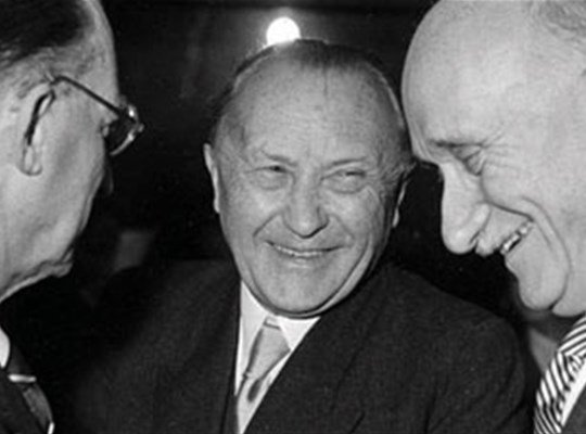 Konrad Adenauer fu un uomo politico tedesco, fondatore del partito CDU, ma soprattutto il primo cancelliere tedesco dopo la Seconda guerra mondiale. Ebbe l’arduo compito di risollevare la Germania dal baratro economico e morale.